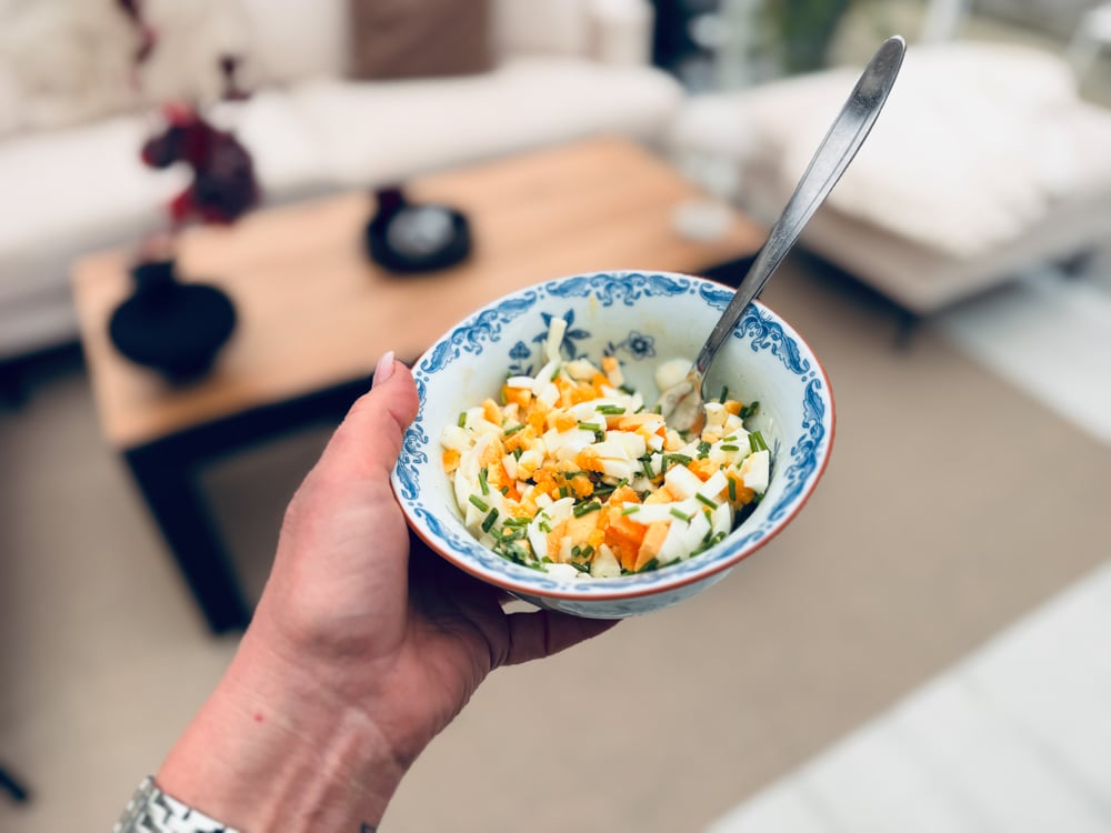 Som sagt, lite extra kärlek till kroppen så nu vid 15 bröt jag fastan med 3 ägg, smör och klippt gräslök. Såååå gott och bra för min kropp.