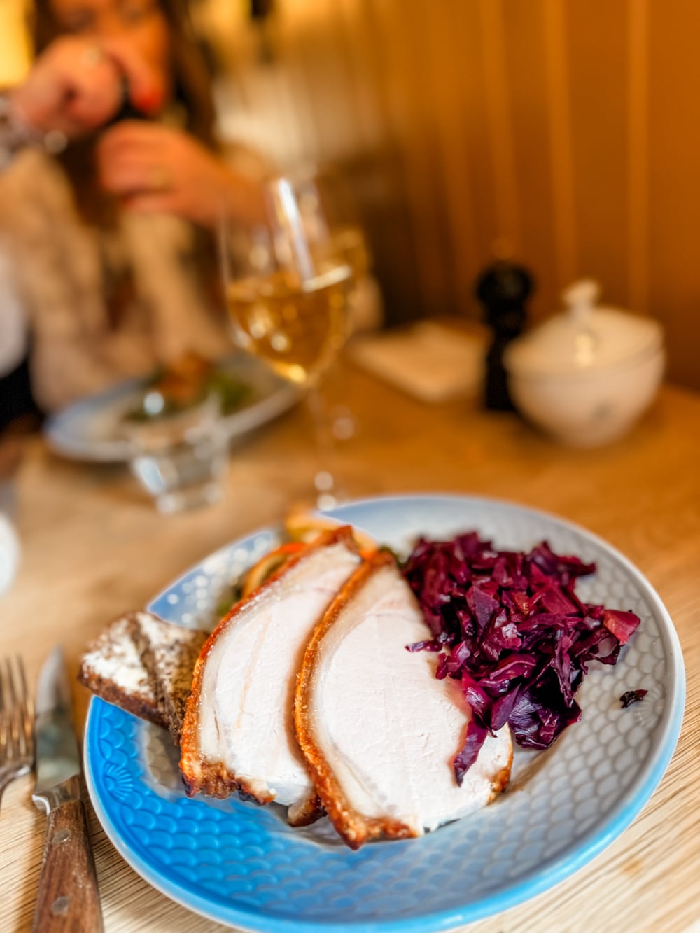 Vi tog in smørrebrød och jag valde Løjtnant Sparres Flæskesteg