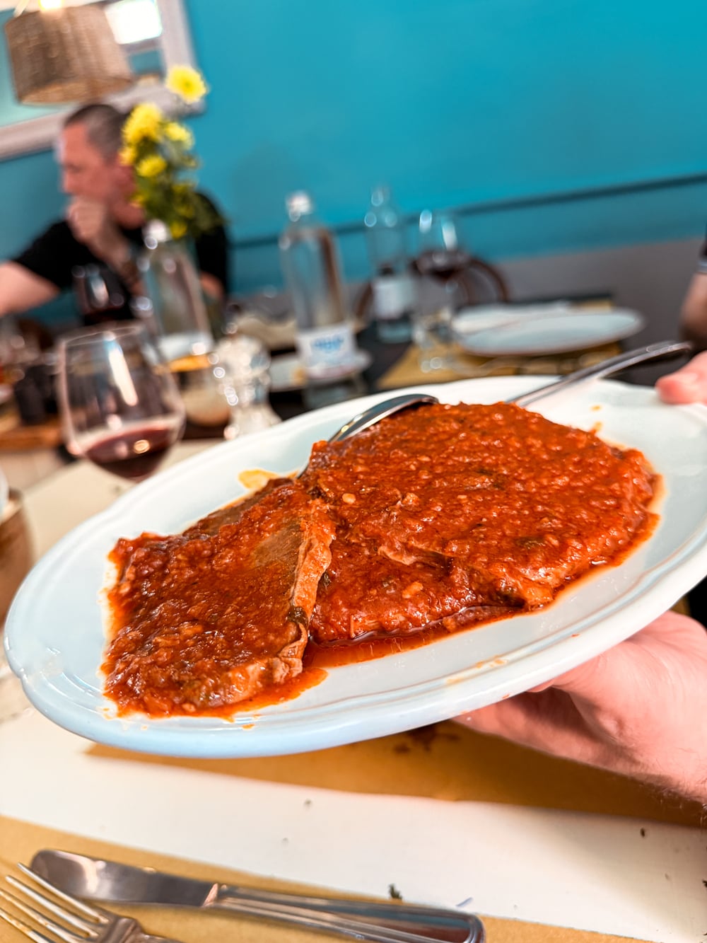 Nä inte den snyggaste matbilden men oj vad detta var gott! Ser kanske inte mkt ut för världen men den så kallade Vincisgrassi som är en för Marche regionen typisk husmansrätt – var SÅ god! Och det var vi alla rörande överens om och bland det godaste på hela resan!