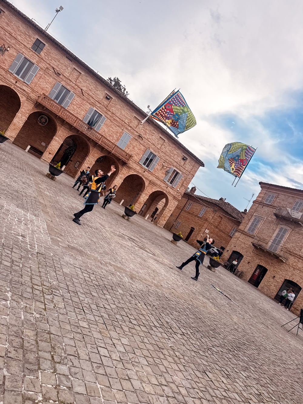 Vi möttes av trummor och flaggor av för att visa lite hur Torneo Cavalleresco Castel Clementino ser ut. Det är en historisk festival med medeltida riddarturneringar och är en folkfest som hålls varje år oftast i augusti.