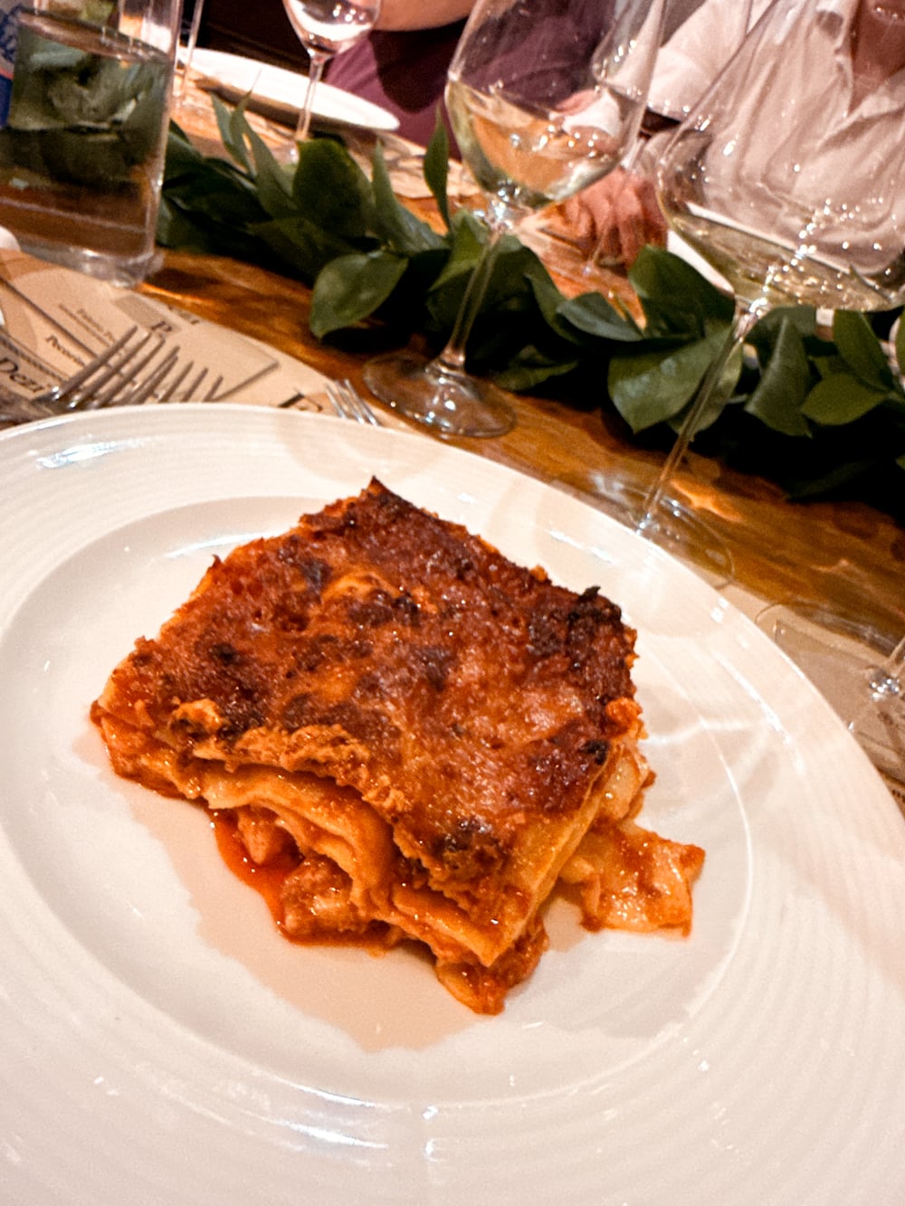 Den görs på 7 lager färska lasagneplattor och i denna var det endast tomatsås, en kombination av kött och parmesan! Och ändå så smakade den helt fantastiskt!