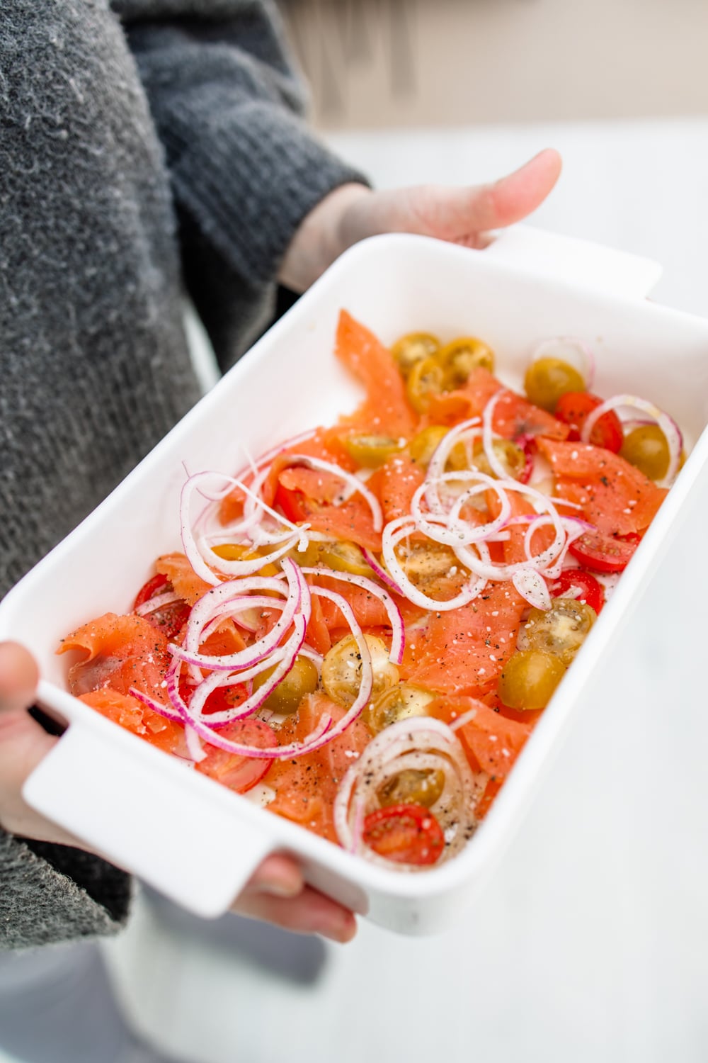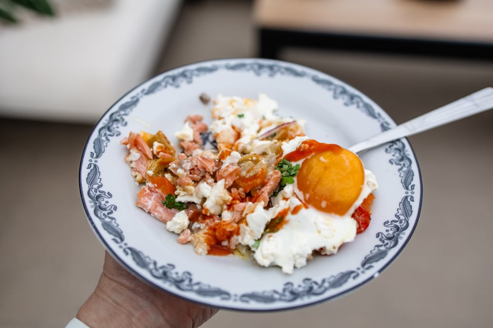 PrintUgnsbakade ägg med lax och tomat