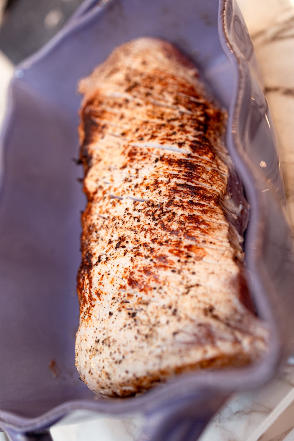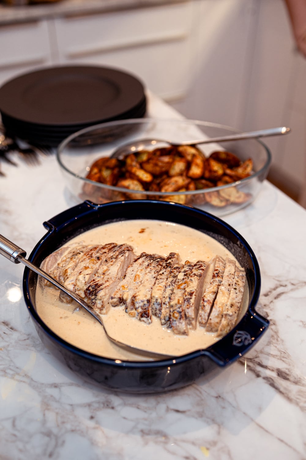 Fläskytterfilé är en tacksam köttdetalj som blir riktigt bra i ugnen, särskilt tillsammans med en sås som får puttra klart runt köttet.