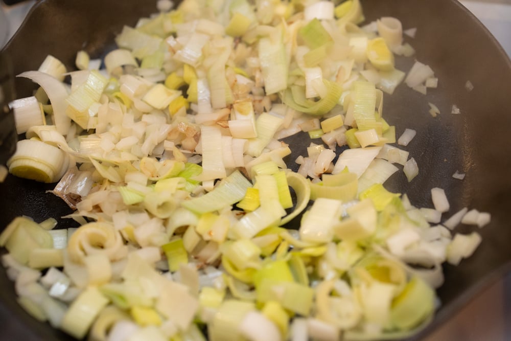Fräs lök och purjolök lätt i lite smör eller olja i en stor kastrull tills det doftar gott. Tillsätt övriga rotfrukter, vatten, fond, lagerblad och timjan. Låt soppan koka i cirka 10–12 minuter tills grönsakerna börjar mjukna.