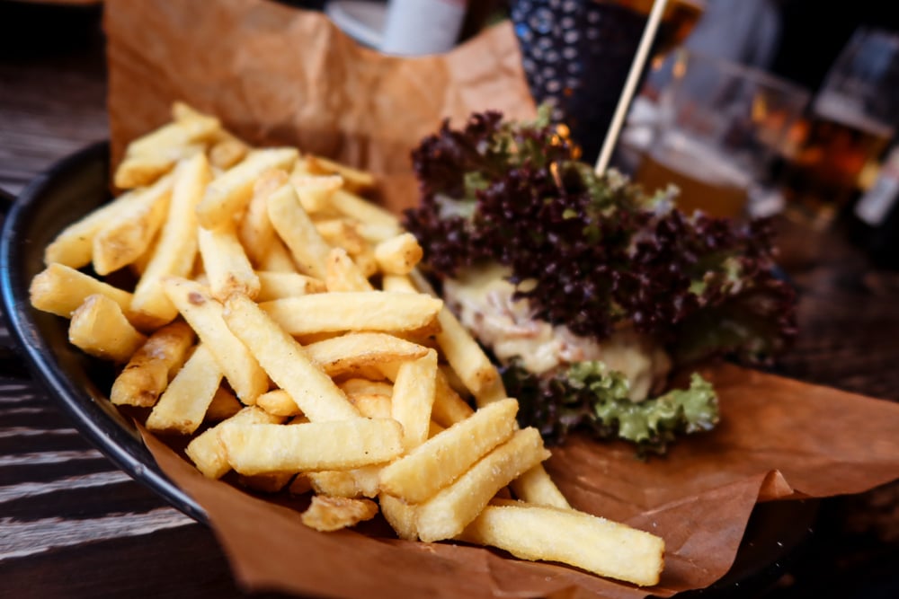 Jag beställde in en smarrig whiskey & baconburgare (bad dem skippa brödet)