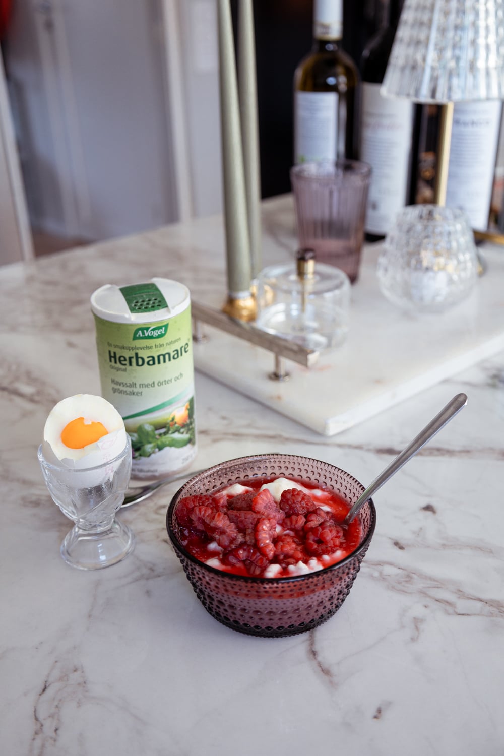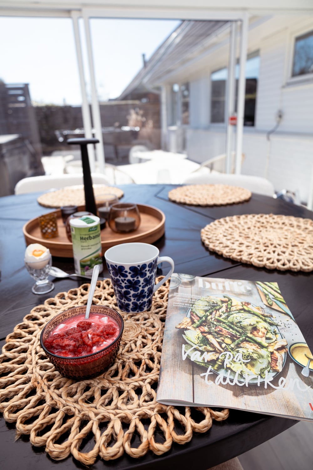 Det var skönt att ta fruktost i uterummet i lugn och ro och läsa nya buffé!