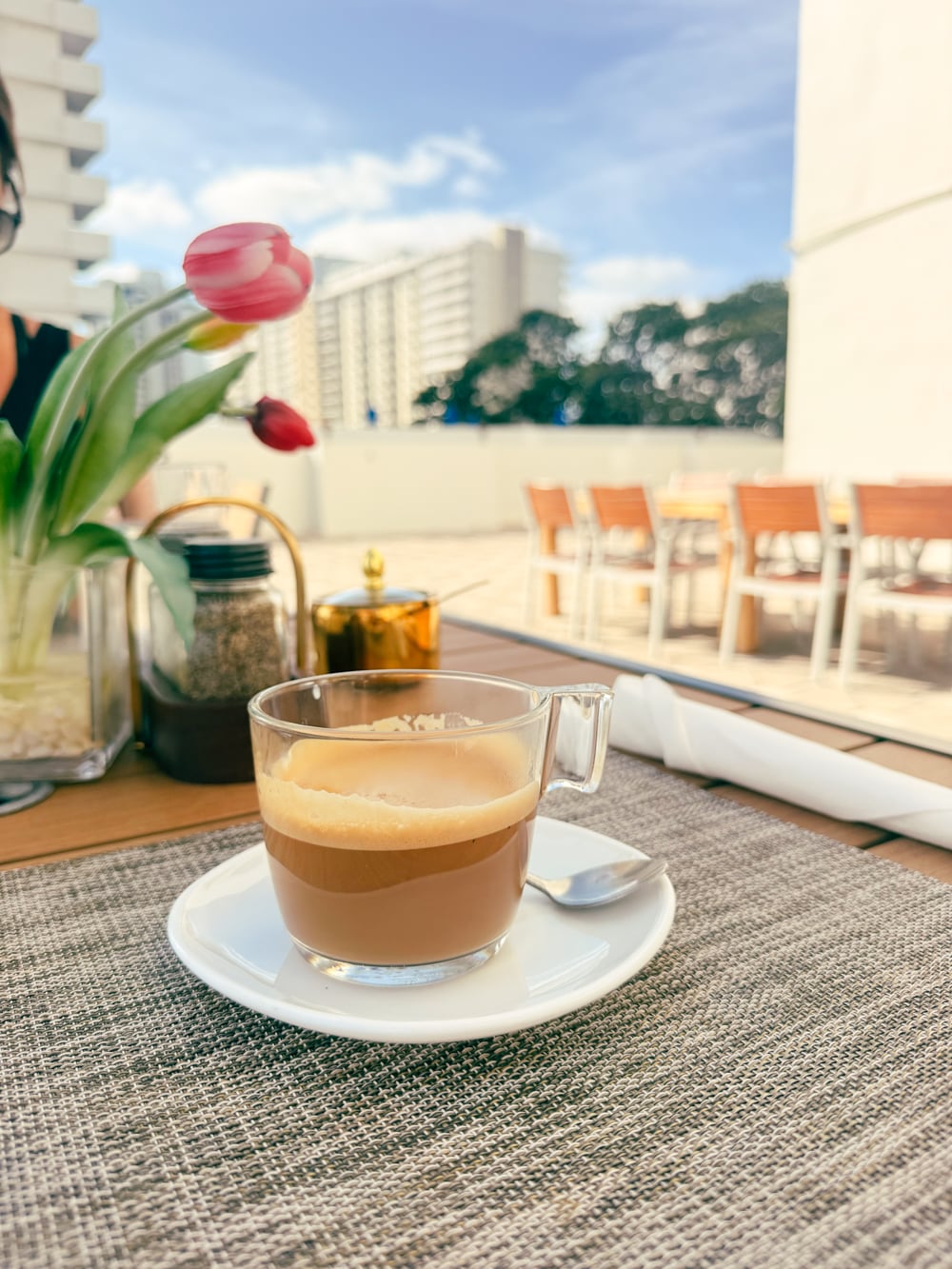 Vi hittade ett frukostställe längs stranden och tog in lite gott att äta.