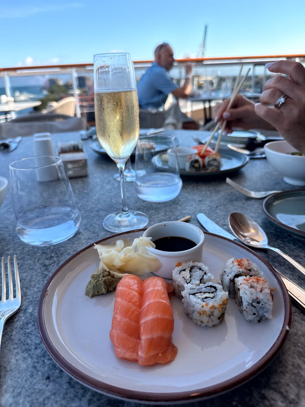 Vid lunchtid var vi ombord på Explora och lade oss vid poolen det första vi gjorde.