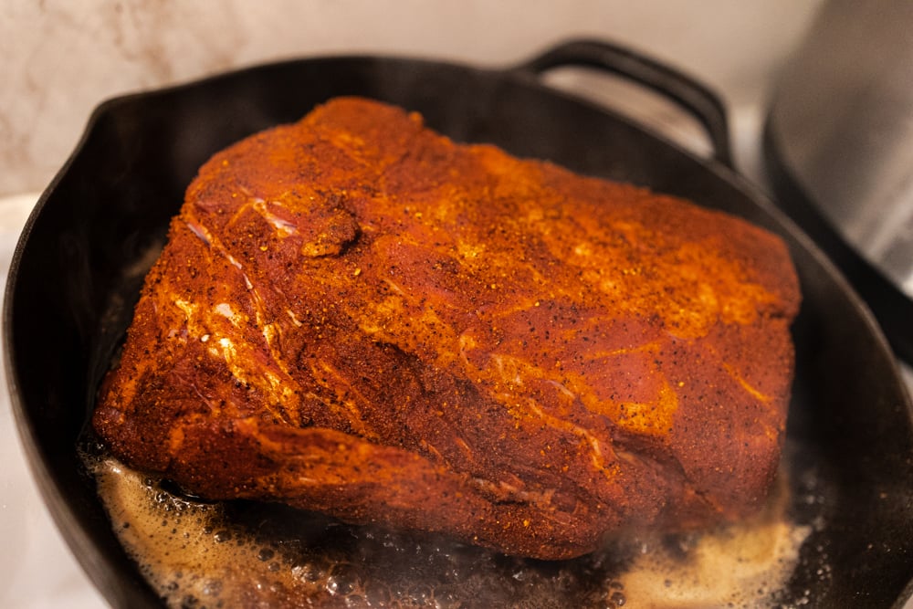 Jag rubbade köttet med Paprikapulver, chilipulver spiskummn, salt, peppar men det är valfritt vad man vill använda.
