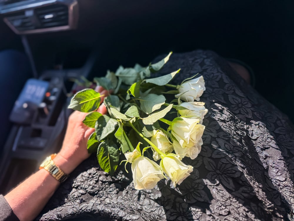8 vita rosor för var och en av oss i familjen.