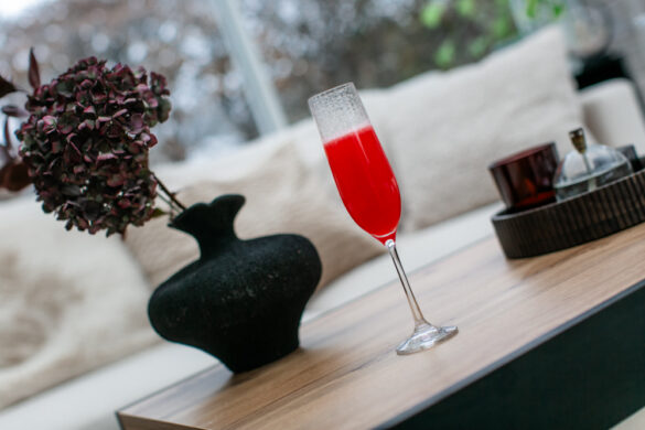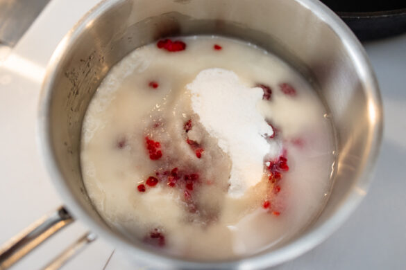 Klickar du upp bilden så står det! Att det är lakritspannacotta med halloncoulis 🙂 ingen drink M.a.o. 🙂