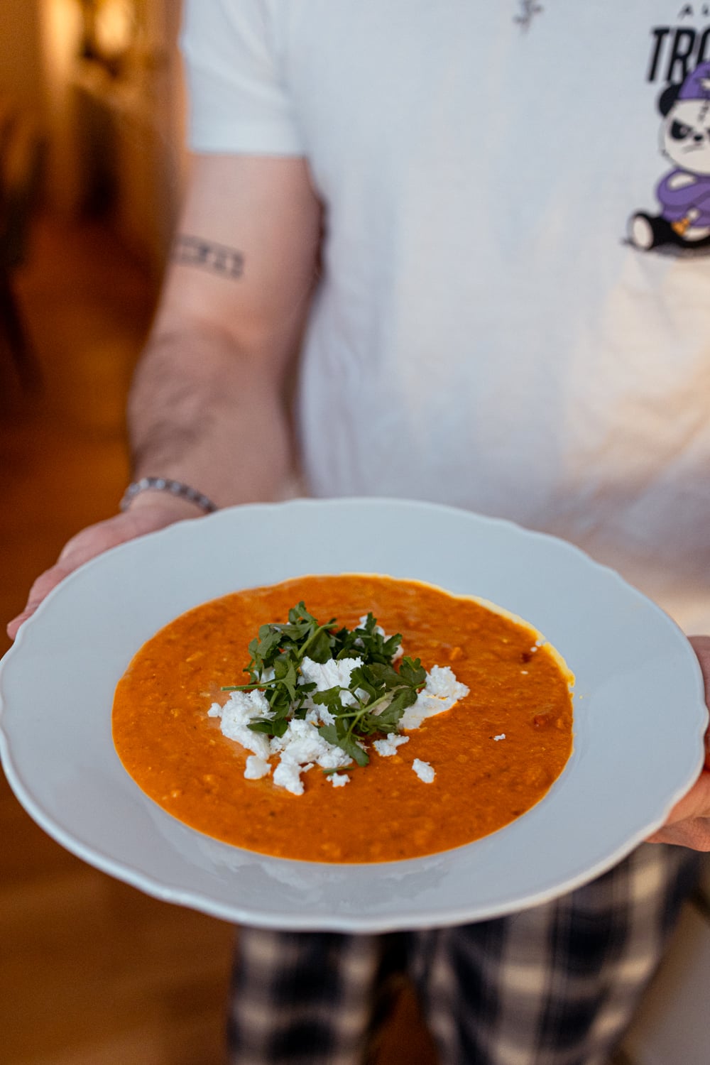 Man kan välja att toppa soppan med vad man vill – fetaost och hackad persilja var 100 poäng här!