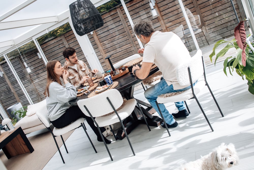 Nico & Norea stannade över så vi åt frukost (påskrester) i uterummet. Mys!