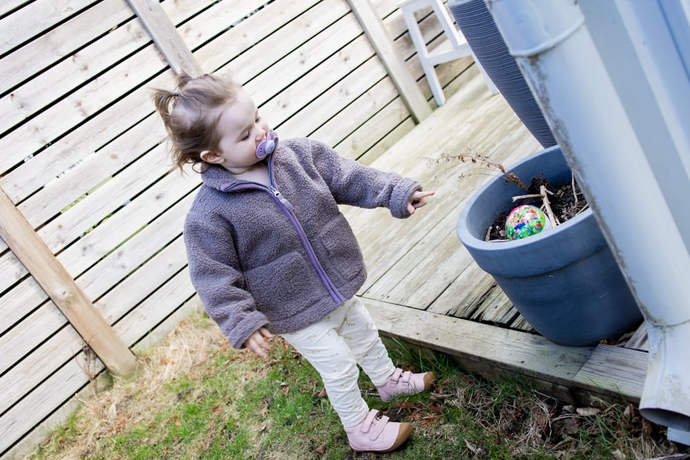 Noel var först ut! haha! han har lärt sig var pappa gömmer äggen 😉