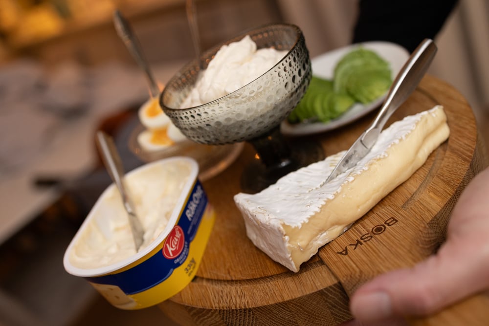 ”Mitt” vin från min vinlåda passade perfekt till! En sydafrikansk Sauvignon Blanc.