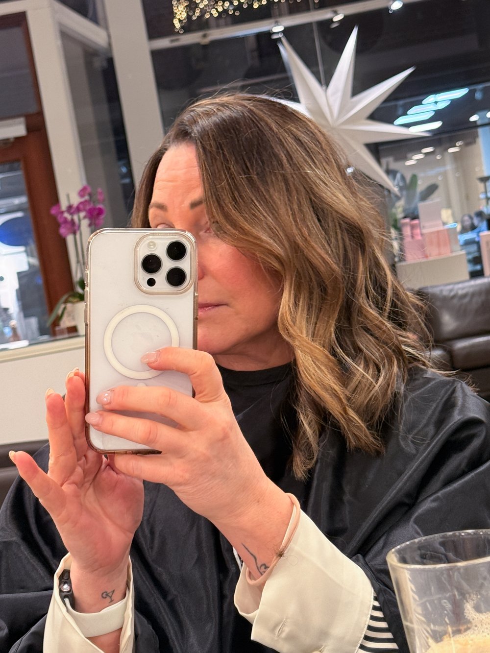 Här ser ni hur långt det var. Jag tycker det är fint med långt men det ska ju inte vara långt till vilket pris som helst – om det inte funkar varken till vardag eller fest så är det ju ingen idé.