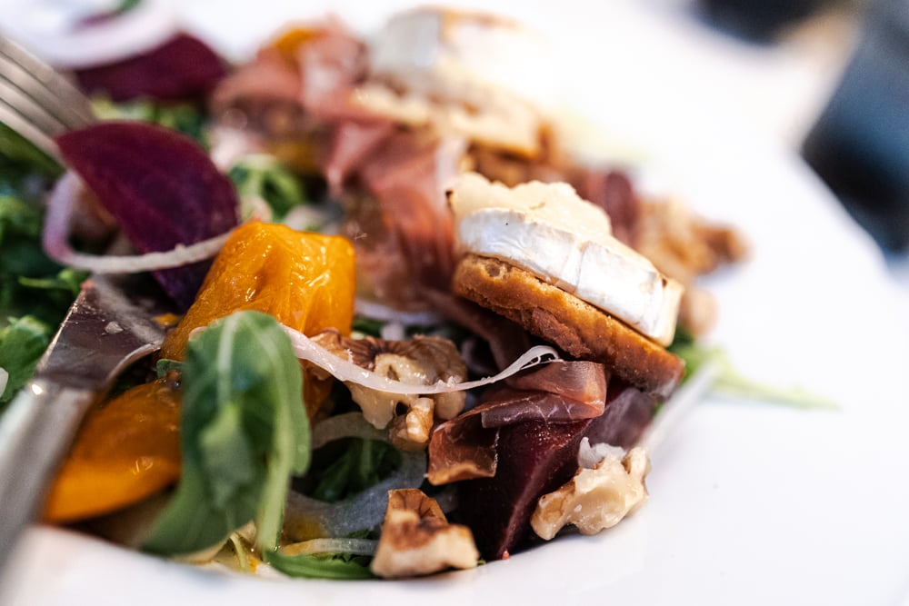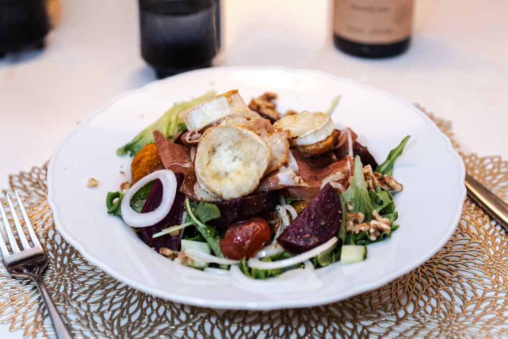 En traditionell Chèvre Chaud-sallad brukar innehålla: