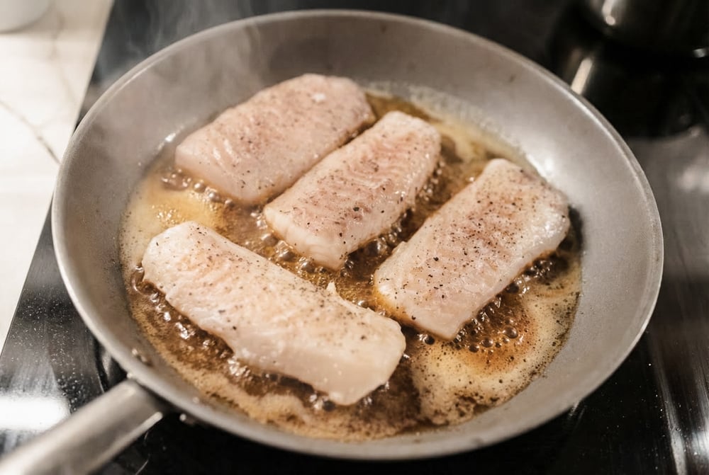 Stekt kolja: Hetta upp en stekpanna med smör på medelhög värme. När smöret tystnat och börjar bli lätt gyllene lägger du i fisken.