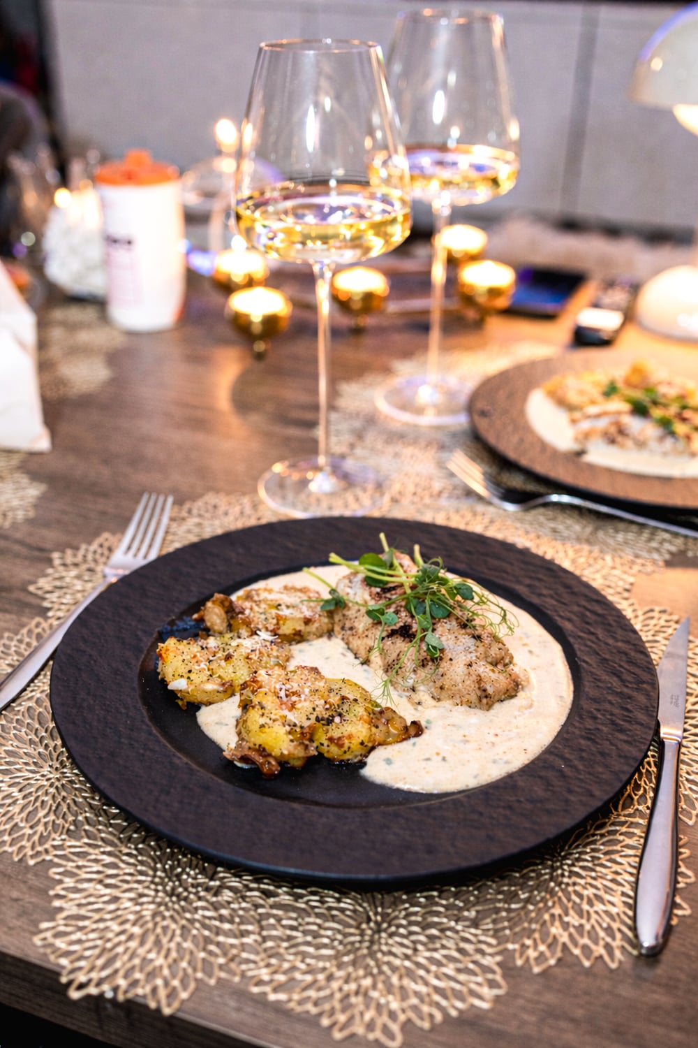 Stekt kolja med brynt sandefjordssås och smashed vitlökspotatis