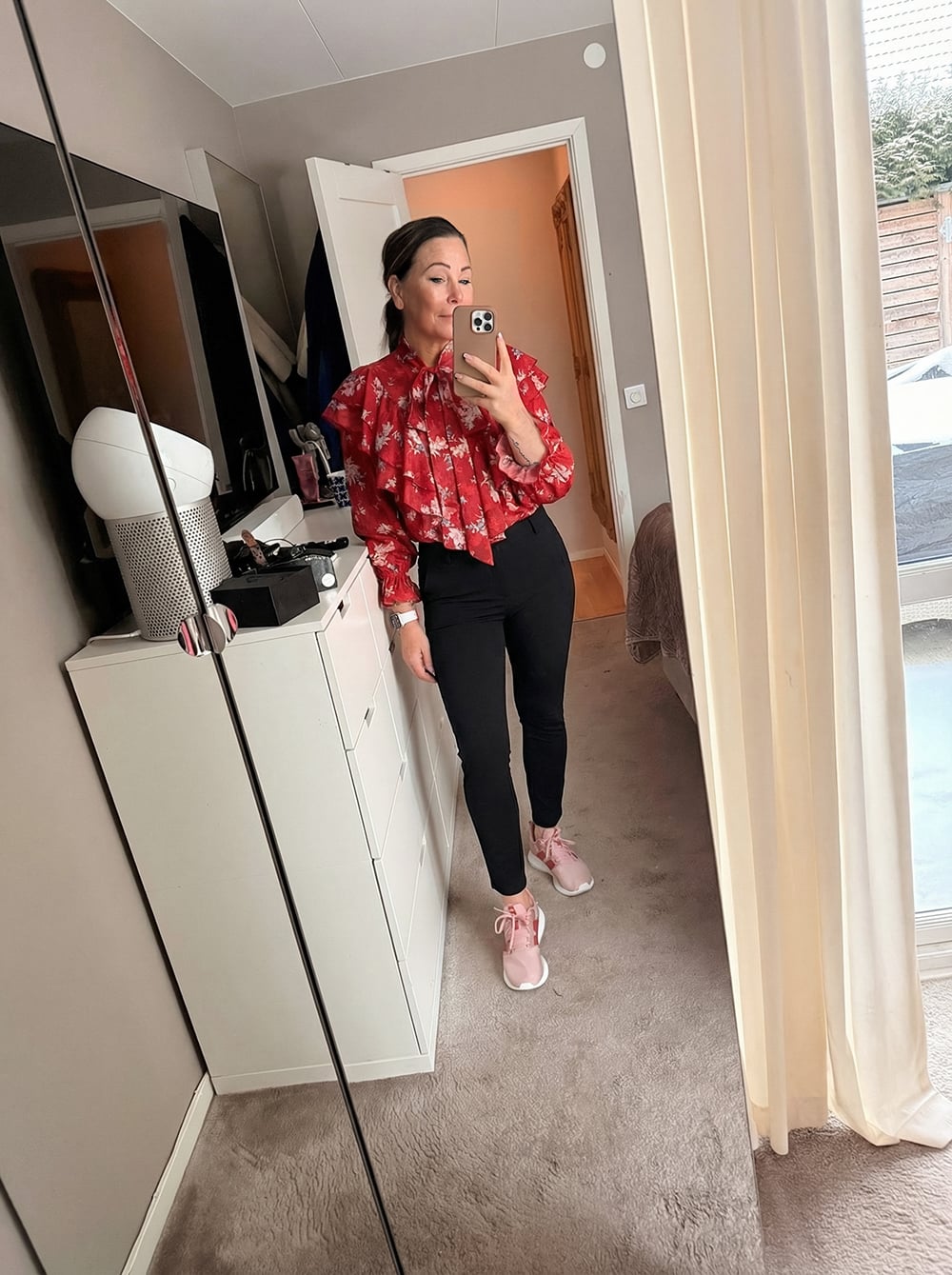 Den här blusen har jag även rosa med svarta prickar, tyvärr slut i de flesta storlekar nu men tror att den kommer in igen eftersom det är en vårnyhet. Men den har kommit in i rött som är SÅ fin!
